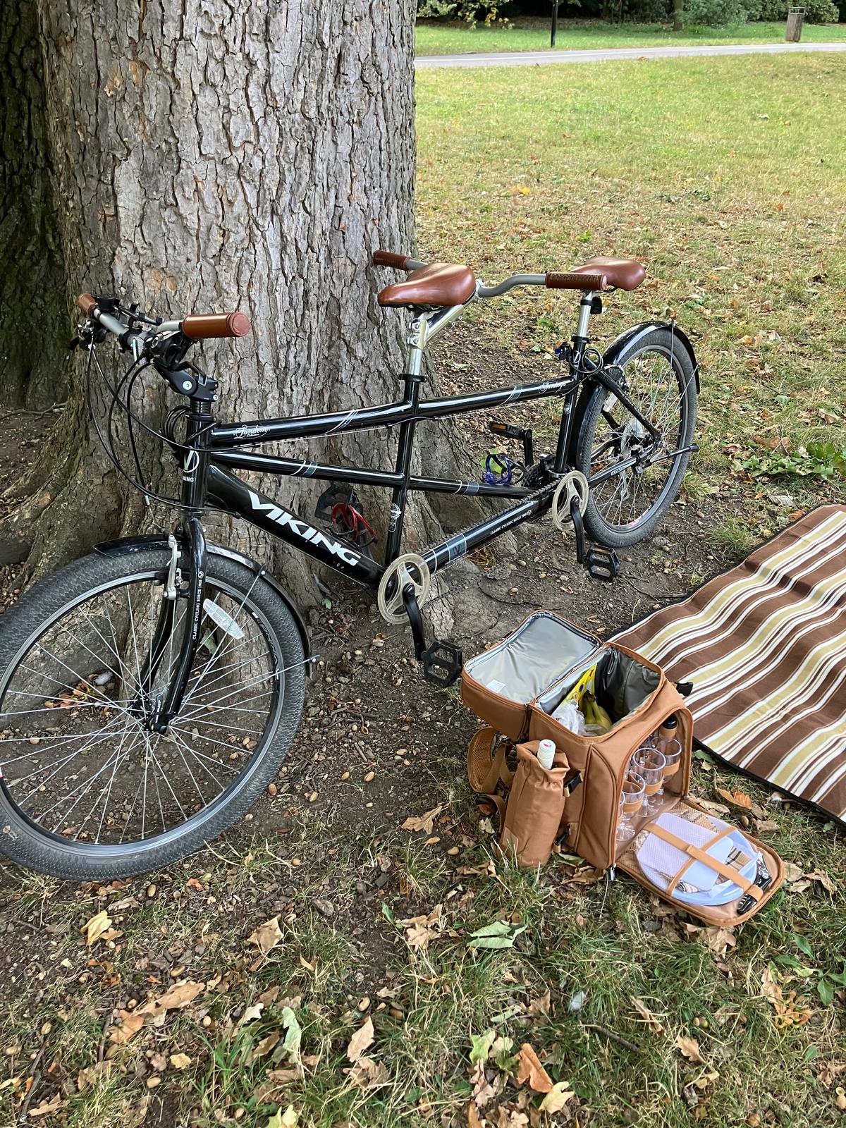 🧺 Piknikový balíček - tandem kolo, piknikový baťoh s občerstvením a dekou na 5h. Netradiční rande!