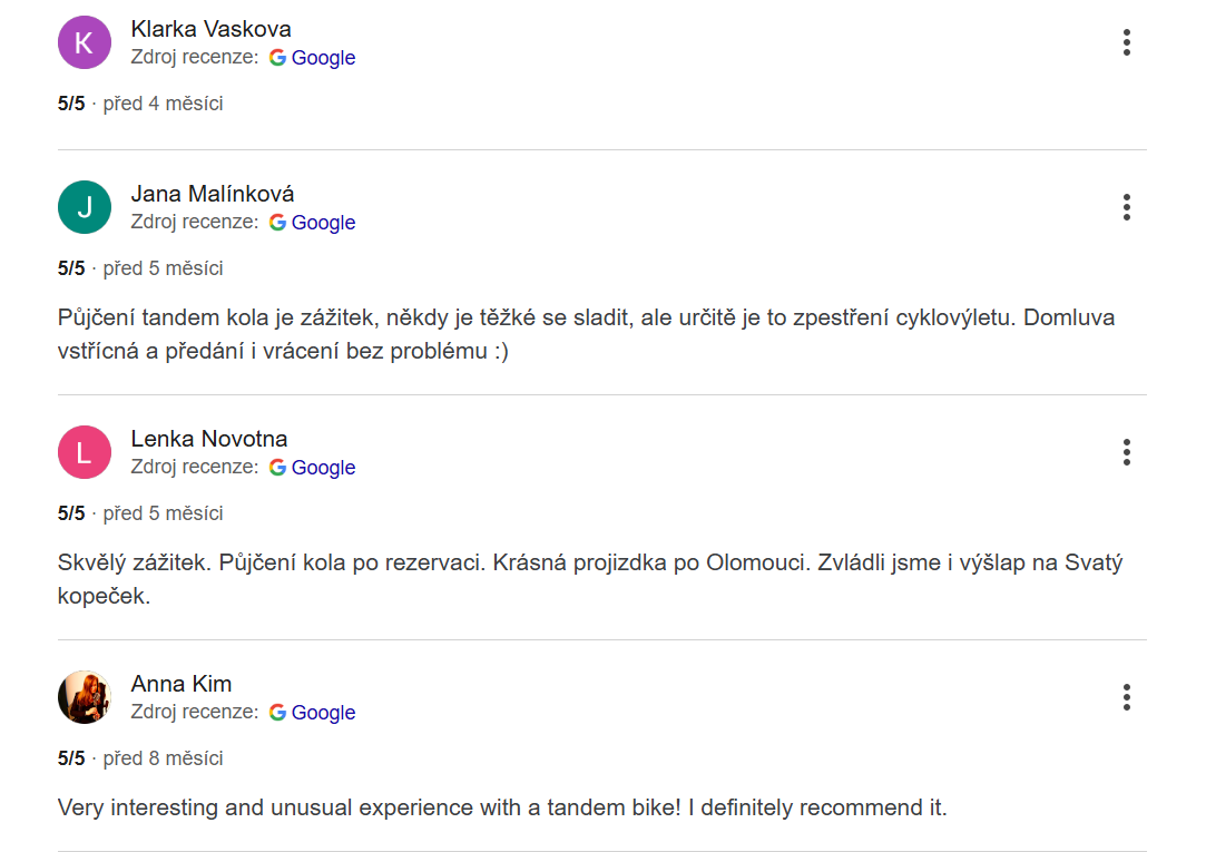 Objednávky přes e-mail tandemkolaolomouc@gmail.com, číslo: 733588003